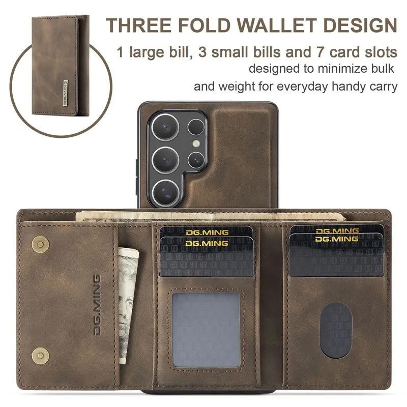 - Â 1 large bill and 3 small bills money pockets and 7 card slots, store and protect your credit card well. The detachable design gives you more choices, with or without card sleeves.