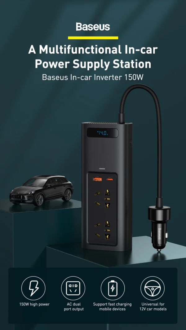 Baseus Power Inverter DC 12V to AC 220V 150W Dual Port Fast Charging Car Power Station