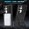 [Foldable Ring Holder]: The mobile phone case with a foldble ring bracket is more convenient to carry and can help prevent the mobile phone from accidentally sliding off and provides your phone with multiple-viewing angles in both vertical and horizontal modes for watching video and movie,FaceTime calls,and etc as a kickstand.