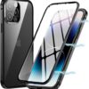 FULL PROTECTION: iPhone 13/14/15 Pro Max Series screen protector magnetic case full body metal frame protection & shock-absorbing design. Explosion-proof magnetic tempered double sided phone case protect against scratches.