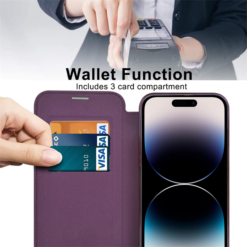 (Card Storage) This notebook style case is made for Samsung Galaxy S23/S22 Ultra with 3 card slots and a free pocket on the inside