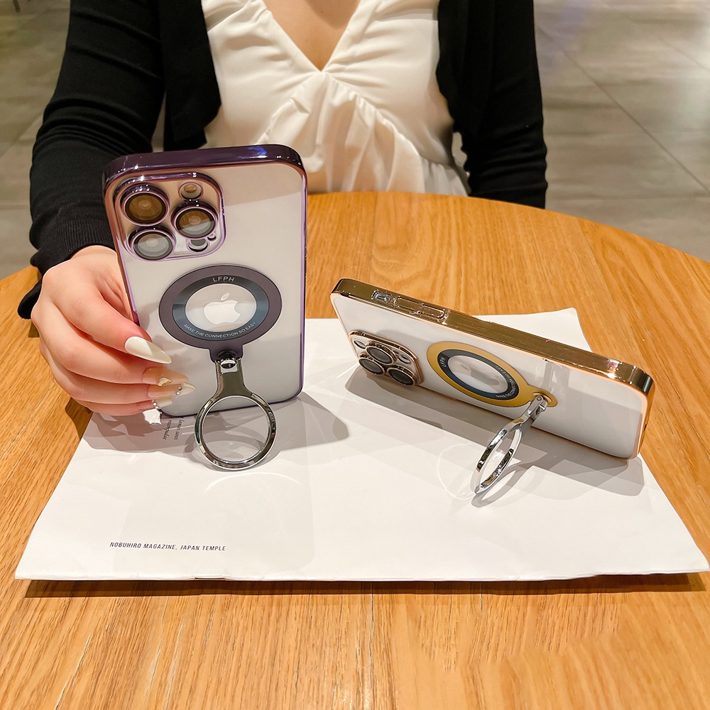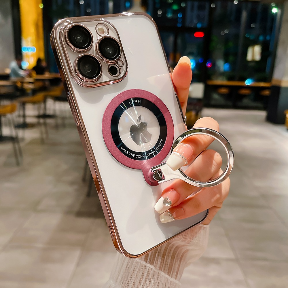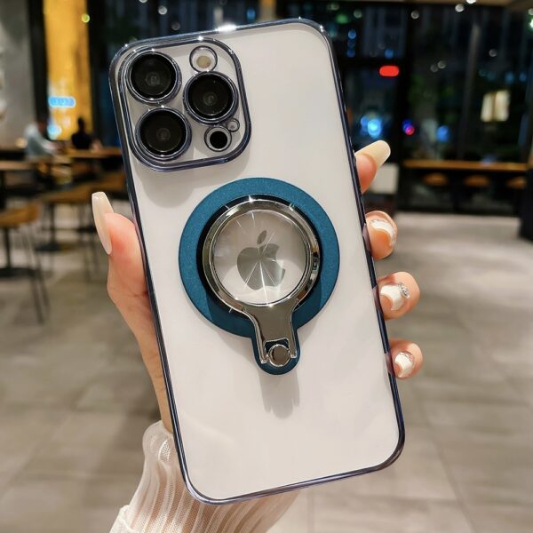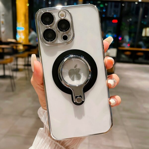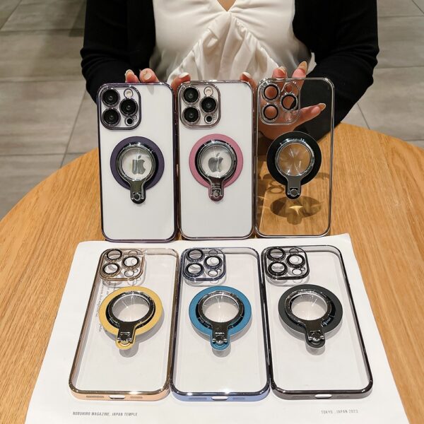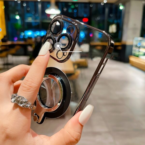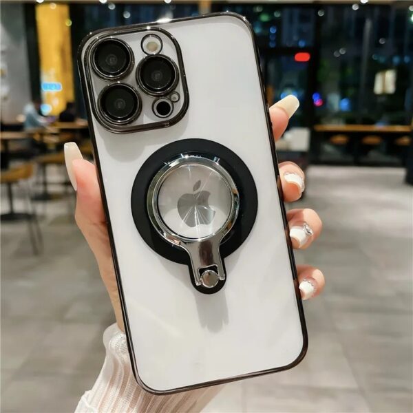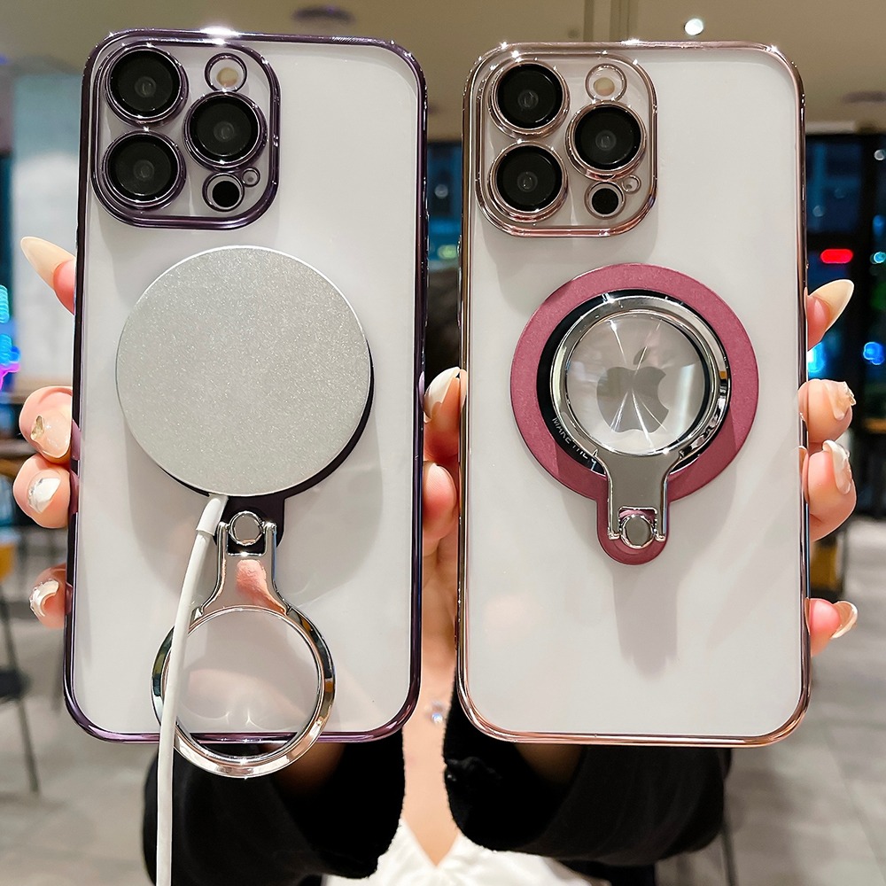 360 Rotating Bracket Electroplated Magnetic Phone Case, Suitable For IPhone 15 15Plus 15Pro 15ProMax 14ProMax 14Pro 14 13ProMax 13Pro 13 12ProMax 12Pro Transparent Phone Case
