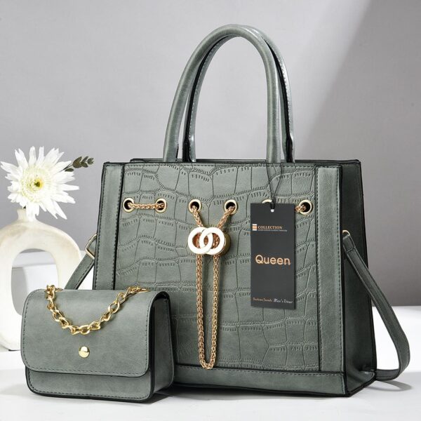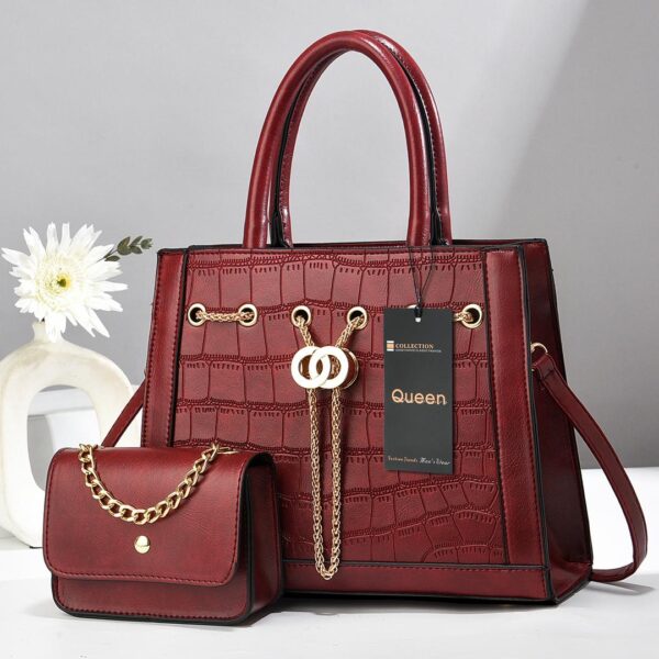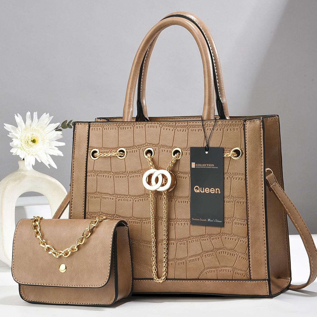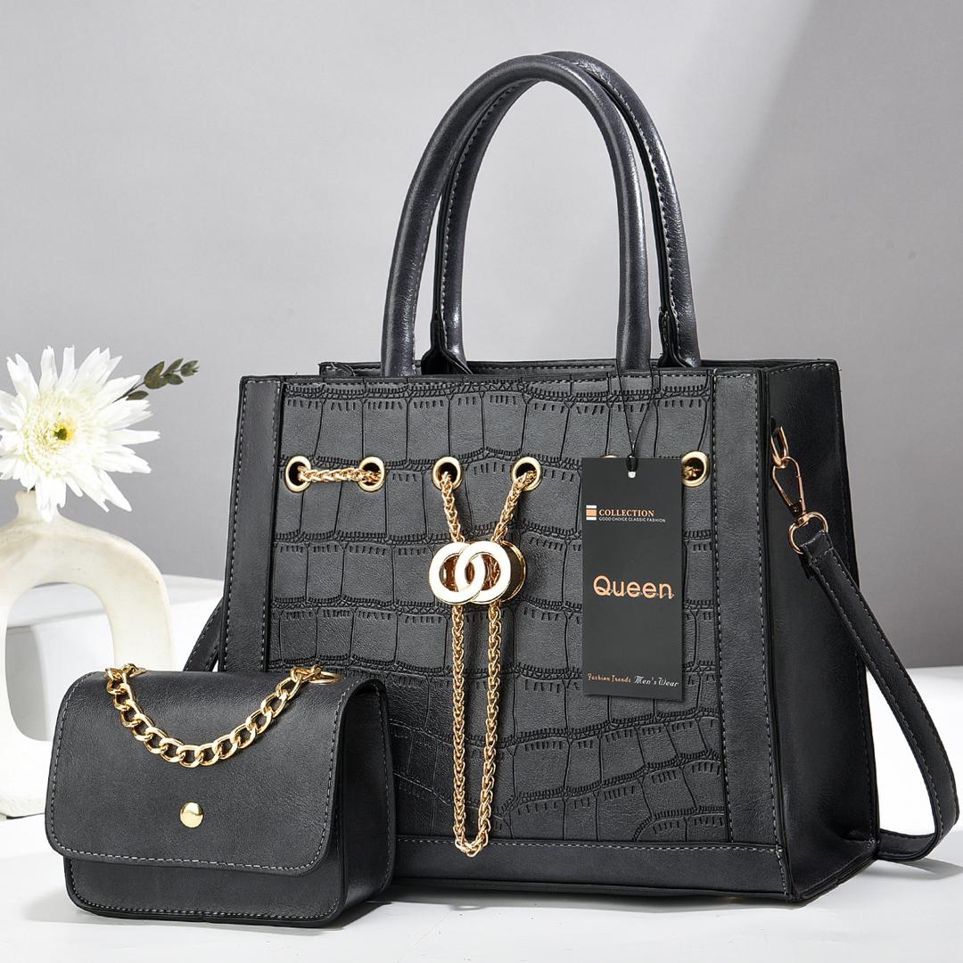 NEW QUEEN 2-in-1 Croc-Embossed Leather Tote & Clutch Handbag Set
