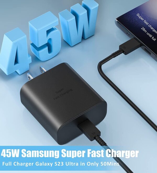 Super Fast Charging 2.0 max. 45W PD Power Adapter is compatible with Galaxy Note 10+, Note 10+ 5G, A91, and future compatible devices / Super Fast Charging max. 25W compatible with Galaxy Fold 6, s24 Ultra, s23 plus, s22, A55, A35, Tab S9, S9 Plus, and future compatible devices