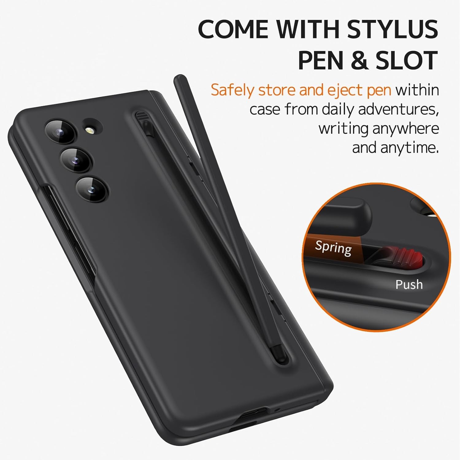 - All-inclusive Hinge Protection with Screen Protector: Unique appearance with lightweight hard matte PC plated material along with 5 in 1 multi-layer ideal structure: ①Front Screen Protector + ② All-inclusive Hinge + ③ Color S Pen + ④ S Pen + ⑤ Handy Holder for full coverage protection and free folding, Samsung Galaxy Fold 6 case with stylus holder attached firmly from edge to edge. Comfortable hand feeling. Durable and distinctive style. Galaxy Fold 6 5G Case.